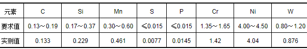 18Cr2Ni4WA化學(xué)成分要求及實(shí)測(cè)值如附表所示,本體解剖的化學(xué)成分符合技術(shù)要求。