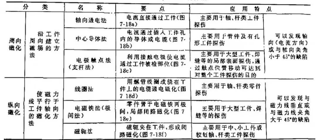 被檢物形狀和預(yù)計(jì)的缺陷方向與磁場方向(H)垂直時(shí),檢測靈敏度最高。與磁場方向(H)平行時(shí)可能檢測不到缺陷。周向磁化法或縱向磁化法的選擇可參照表1。對長度和重量超過探傷機(jī)技術(shù)指標(biāo)的被檢物,用分段繞電纜的方法進(jìn)行縱向檢測。換裝薄型被檢物用感應(yīng)電流法測其環(huán)狀缺陷。
