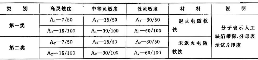 有關(guān)檢測標(biāo)準(zhǔn)都對被檢物檢測靈敏度提出了明確要求,實(shí)際檢測中采用靈敏度標(biāo)準(zhǔn)試片或試塊校準(zhǔn),或驗(yàn)證被檢物檢測靈敏度,靈敏度試片(塊)還用于大致確定磁化電流值,用于考察被檢物各處磁場分布規(guī)律等。