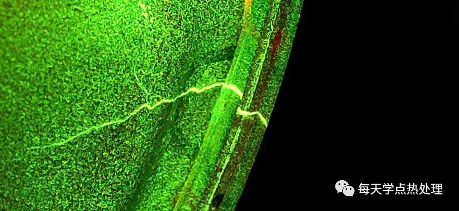 ▲熒光磁粉缺陷顯示影像實(shí)例