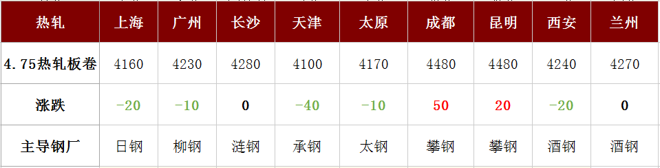 今日全國24個(gè)主要城市熱軋價(jià)格盤整運(yùn)行,3.0熱軋板卷全國均價(jià)4298元/噸,較上一交易日下跌5元/噸,4.75熱軋板卷全國均價(jià)4245元/噸,較上一交易日下跌5元/噸。今日期貨市場震蕩運(yùn)行,市場觀望情緒加重,商家報(bào)價(jià)窄幅盤整。目前市場需求仍未明顯好轉(zhuǎn),成交的低迷導(dǎo)致價(jià)格稍有松動(dòng)。不過考慮成本的因素,價(jià)格下跌空間不大。另外今日鋼坯市場價(jià)格上漲10元/噸,現(xiàn)普碳坯價(jià)格在3730元/噸。綜合來看,預(yù)計(jì)明日熱軋市場價(jià)格震蕩運(yùn)行。