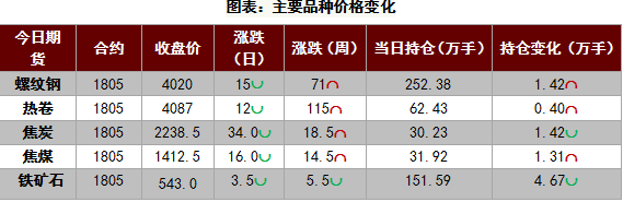今日黑色系商品期貨震蕩下跌為主,其中雙焦跌幅較大,其余品種小幅下跌。倉位變化來看,除鐵礦減倉量較大外,其余品種小幅增減倉,行情進(jìn)入窄幅震蕩,蓄勢(shì)待發(fā)階段?,F(xiàn)貨方面,盡管鋼坯小幅上漲,但今日成交并未見好轉(zhuǎn),交投氣氛偏淡。不過,商家心態(tài)仍未變化,各品種價(jià)格窄幅調(diào)整。明日華東主導(dǎo)鋼廠將出臺(tái)3月上旬價(jià)格政策,市場預(yù)期以大幅上漲為主,故預(yù)計(jì)短期國內(nèi)鋼價(jià)堅(jiān)挺運(yùn)行為主。