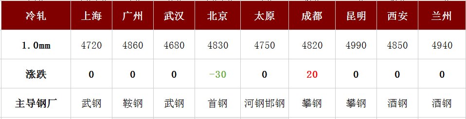 今日全國冷軋價(jià)格小幅回落。價(jià)格方面:1.0全國冷軋均價(jià)4835元/噸,較上個(gè)工作日價(jià)格下降8元/噸。主要市場價(jià)格方面:上海市場1.0mm武鋼卷板報(bào)價(jià)4720元/噸,廣州市場1.0mm鞍鋼卷報(bào)價(jià)4860元/噸,天津市場1.0mm鞍鋼天鐵卷報(bào)價(jià)4730元/噸,較昨日下跌30元/噸。南京下調(diào)10元/噸,北京、天津下調(diào)30元/噸,石家莊下調(diào)150元/噸。市場方面:由于節(jié)后價(jià)格快速拉漲,但成交乏力,需求啟動(dòng)緩慢,下游基本要正月十五以后開工,導(dǎo)致部分地區(qū)價(jià)格回落。綜合來看,預(yù)計(jì)明日冷軋價(jià)格窄幅震蕩為主。