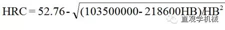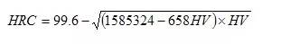 本公式與國(guó)家標(biāo)準(zhǔn)實(shí)驗(yàn)換算值對(duì)照,換算式計(jì)算結(jié)果與標(biāo)準(zhǔn)實(shí)驗(yàn)值之誤差為±0.1HRC。