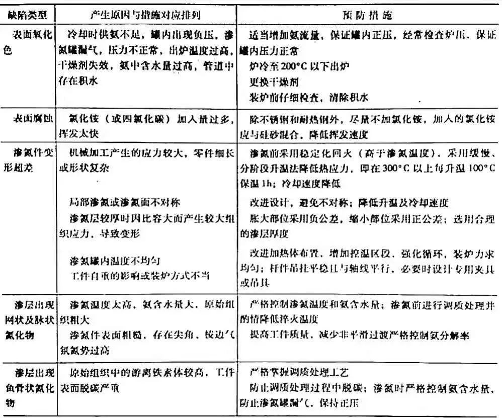 滲氮一些常見的缺陷及預(yù)防措施列于表11中 。