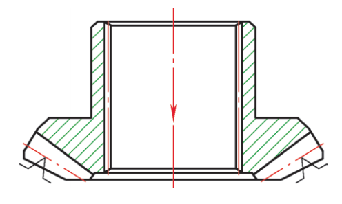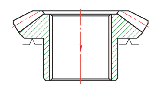 另外,零件在進(jìn)行內(nèi)花鍵拉削加工時(shí),拉削方向也會(huì)影響拉削后花鍵孔的收縮量,如圖4所示拉削時(shí),拉削后測(cè)量薄壁端收縮量為0.02~0.03mm,若調(diào)整拉削方向,拉削后測(cè)量幾乎沒(méi)有收縮量,如圖5所示。