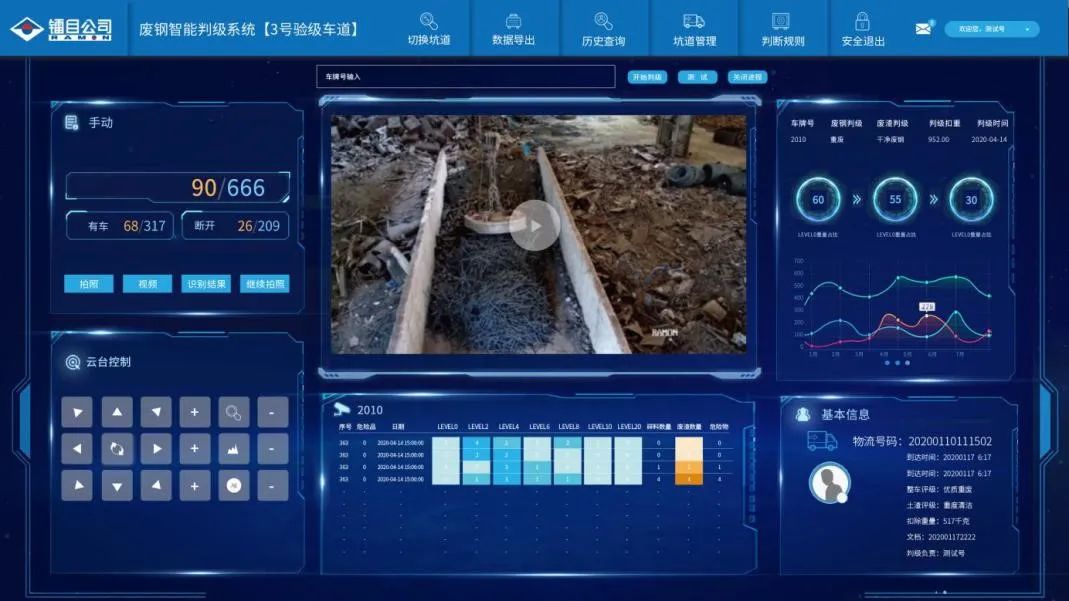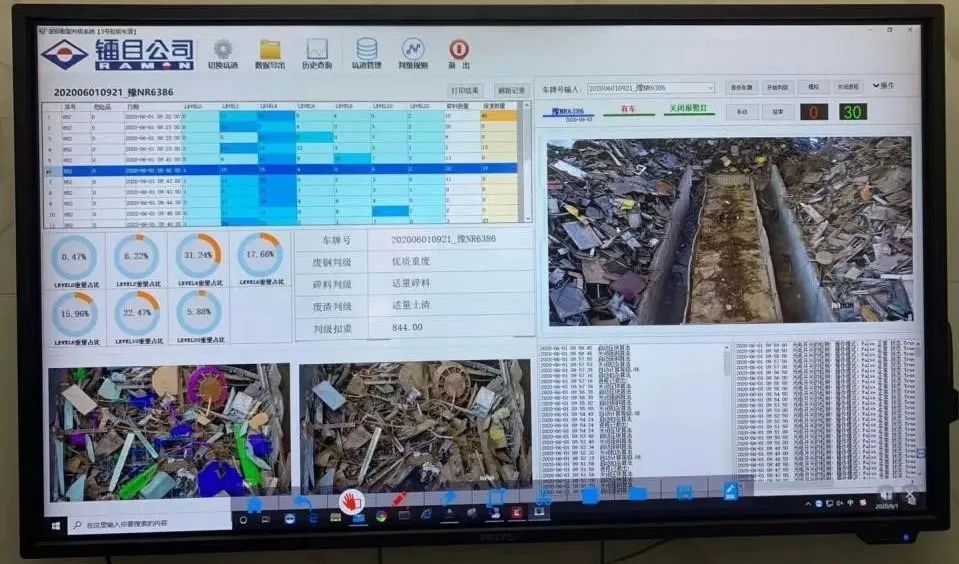 現場各位置布置多塊高清可觸控顯示屏,現場驗級人員,廢鋼供應商等人員可進行實時操作,觀察廢鋼卸車情況,查看系統(tǒng)評級依據,車內各廢鋼料型的占比情況,油污渣土碎料等扣重信息以及最終評級結果。