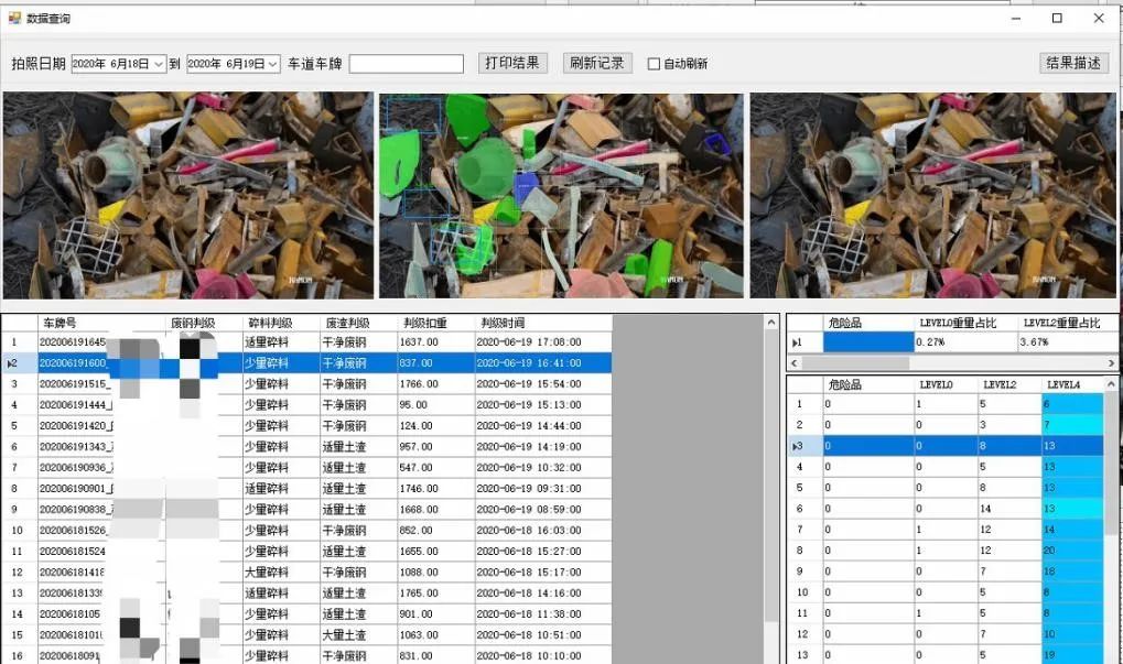 • 現場檢測出車輛上下廢鋼變化情況過大,或者有摻假等需要進行扣罰,沒收,退貨等處理的車輛時,及時預警并提醒現場人員人工介入。