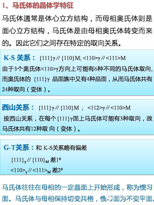 (本平臺"常州精密鋼管博客網"的部分圖文來自網絡轉載,轉載目的在于傳遞更多技術信息。我們尊重原創(chuàng),版權歸原作者所有,若未能找到作者和出處望請諒解,敬請聯系主編微信號:steel_tube,進行刪除或付稿費,多謝!)金相組織之馬氏體,馬氏體的晶體特征及組織形態(tài)