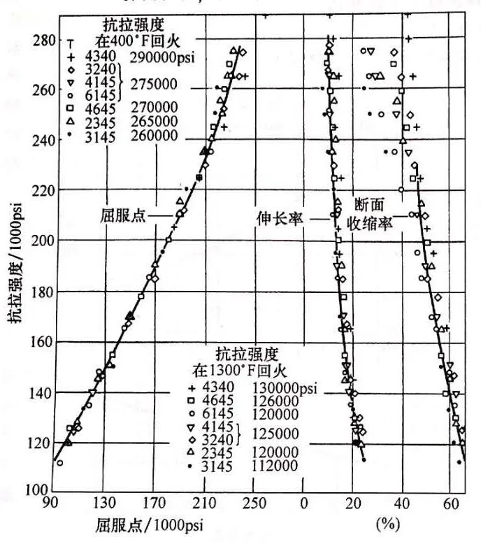 ▲圖10 各種溫度和時(shí)間下4330鋼的回火效應(yīng)