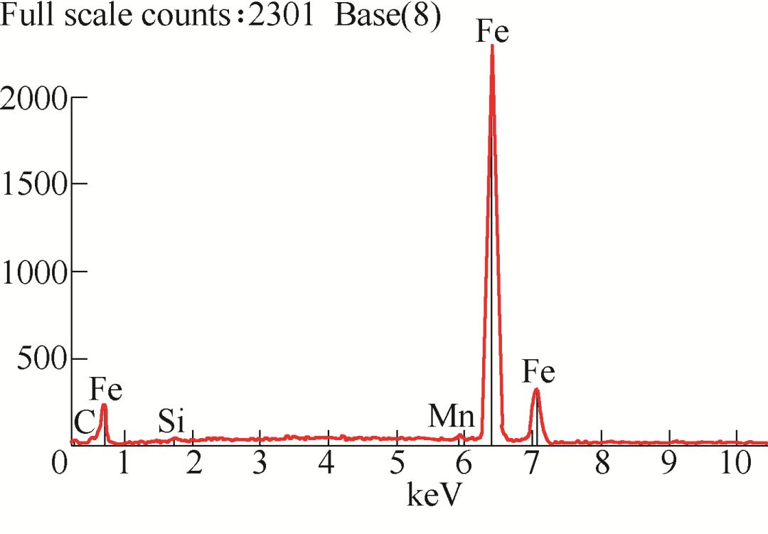 結點內側處(即基體)金相組織為回火索氏體+鐵素體,對其進行電鏡掃描,能譜結果見圖20。