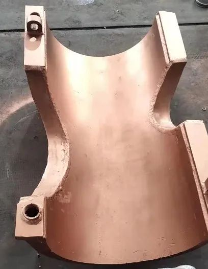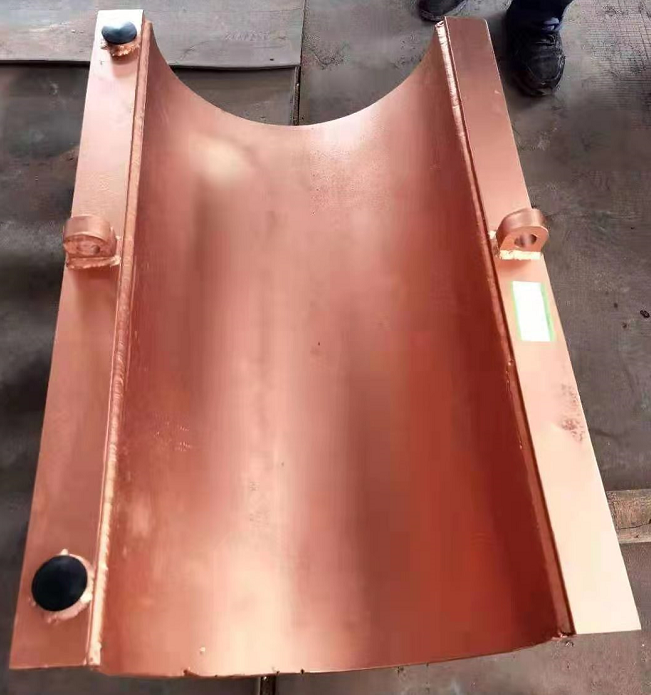 銅鋼復(fù)合渣溝槽,涉及鋼鐵冶煉附屬裝置技術(shù)領(lǐng)域,內(nèi)弧面采用銅板模壓制作,表面噴涂新型耐磨耐高溫涂層。外弧面采用鋼板模壓而成,內(nèi)部設(shè)計(jì)有冷卻水道,各組件采用特種金屬焊接技術(shù)進(jìn)行銅鋼焊接。銅鋼復(fù)合渣溝槽兩端設(shè)計(jì)進(jìn)出水口連接高爐冷卻水循環(huán)系統(tǒng)。
