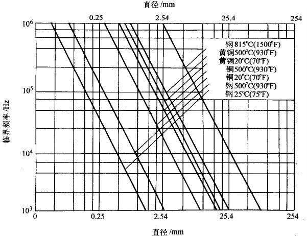 ▲圖1 幾種材料有效加熱臨界頻率與工件尺寸的關(guān)系