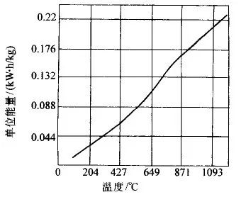 ▲圖2 工件感應(yīng)透熱加熱溫度與單重所需能耗