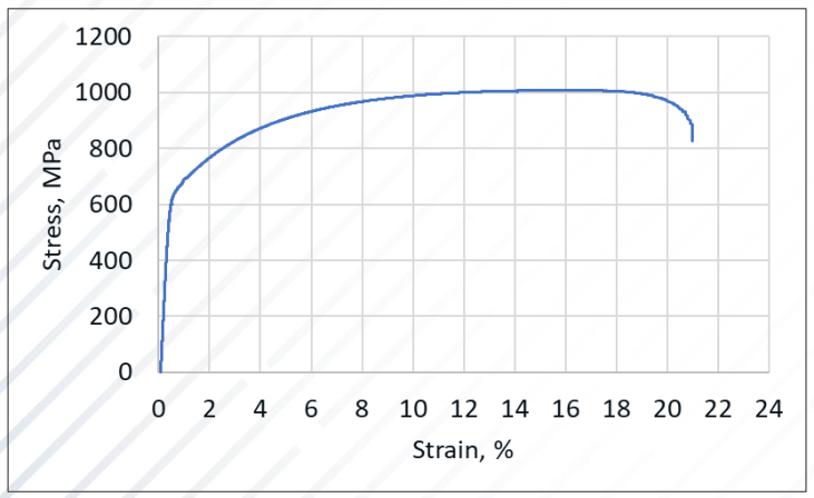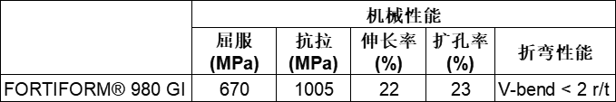 那么這個(gè)Fortiform 980 GI是什么樣的鋼呢?首先我們來(lái)看看它的力學(xué)性能,根據(jù)官方數(shù)據(jù),Fortiform 980 GI實(shí)物力學(xué)性能如下表: