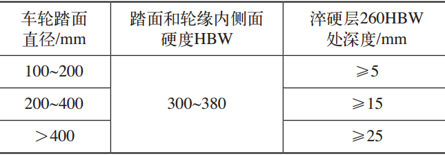 JB/T 6392—2008《起重機(jī)車輪》中對熱處理的技術(shù)要求如下: