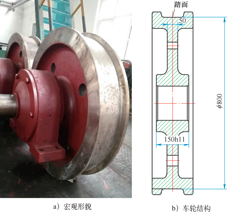 傳統(tǒng)起重機(jī)車輪熱處理工藝一般是先經(jīng)過調(diào)質(zhì)處理后再進(jìn)行表面淬火,但是由于表面淬火硬度過渡層不好控制,容易剝落和輪緣磨損嚴(yán)重,經(jīng)過較長時間的工作后,在交變應(yīng)力的作用下,起重機(jī)車輪踏面容易產(chǎn)生裂紋或突然斷裂,導(dǎo)致疲勞失效,嚴(yán)重影響起重機(jī)車輪的質(zhì)量和使用壽命。
