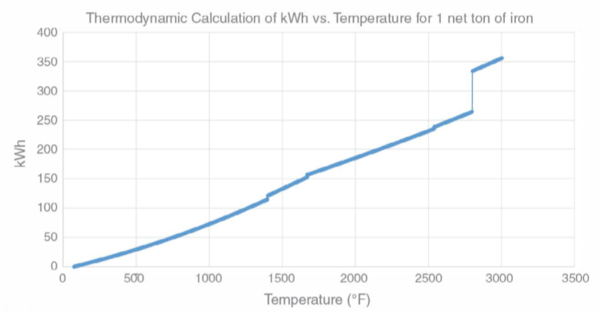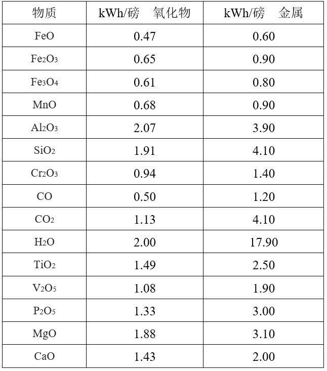 對于工藝工程師來說,另一個有用的練習例子是為電爐開發(fā)了一個靜態(tài)能量匯總。有了完整的渣量平衡和良好的爐號記錄數(shù)據(jù),就可以制作一個所有電能和化學能輸入的總匯表,并與將一噸鋼水從室溫廢鋼到出鋼溫度所需的最小理論能量進行比較。這是評估各種能源的成本與效益的有用基準。如果任何一種能源的真實價格都被開發(fā)出來,其結(jié)果都可能是令人震驚的。例如,當一爐鋼結(jié)束冶煉時,以下輸入應該是已知的或可以估計的:
