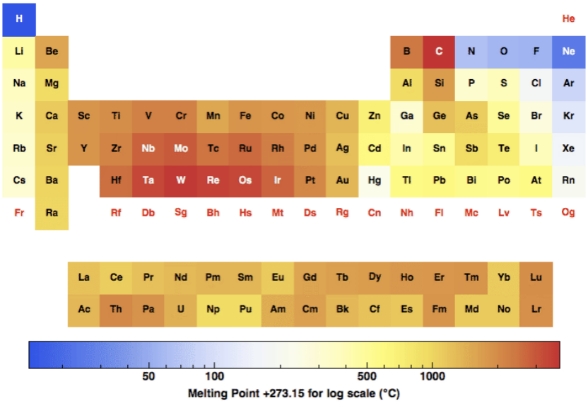 如無(wú)特別說(shuō)明,熔點(diǎn)均是指1個(gè)大氣壓(100 kPa)外部壓力下的熔點(diǎn)。