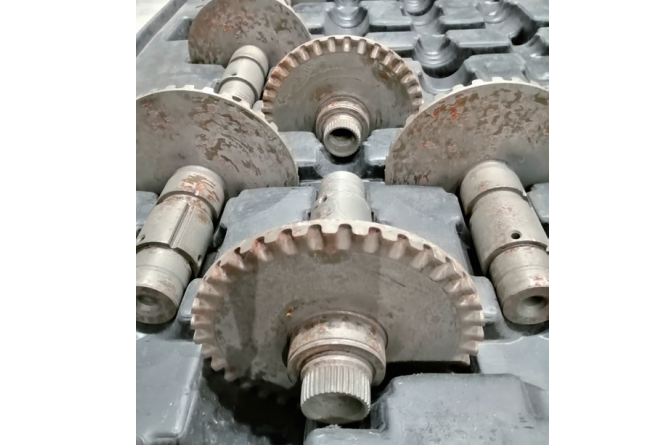 主動(dòng)帶輪軸拋丸525s,工件表面無(wú)銹跡、水印,但一些工件大端深孔內(nèi)仍有少量印痕。反方向再拋丸120s,印痕基本清除,但單件節(jié)拍40.3s/件,超過(guò)了35s/件的設(shè)定要求。考慮到4種工件為1套,每套工件總的節(jié)拍時(shí)間要求為140s,現(xiàn)1套工件實(shí)際生產(chǎn)時(shí)間為116.875s,總節(jié)拍時(shí)間在要求范圍內(nèi)。