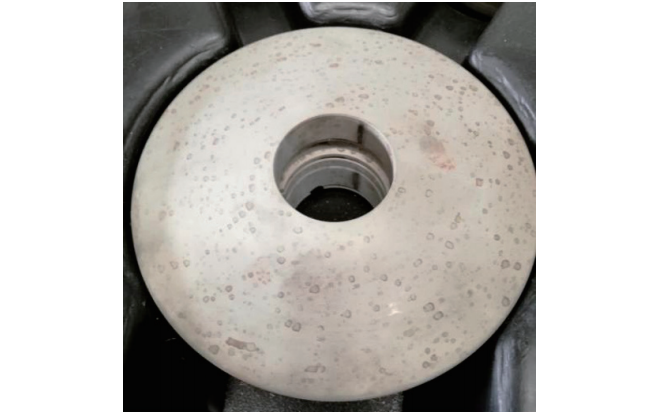 經(jīng)觀察分析,2020年因受疫情影響,工廠春節(jié)后停產(chǎn),工件庫(kù)存時(shí)間過(guò)長(zhǎng),加上空氣濕度大,使工件產(chǎn)生銹蝕,如圖3、圖4所示。