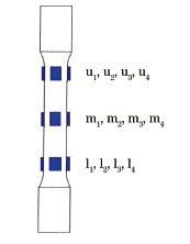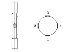 國際標準ISO 23788:2012《金屬材料 疲勞試驗機同軸度的檢驗》也描述了同軸度檢測,該標準類似于ASTM E1012,主要的區(qū)別在于ISO 23788:2012采用2層共8片應變片,而ASTM E1012—2014采用3層共12片應變片。中國標準GB/T 34104—2017等效采用了ISO 23788:2012。
