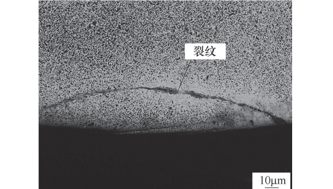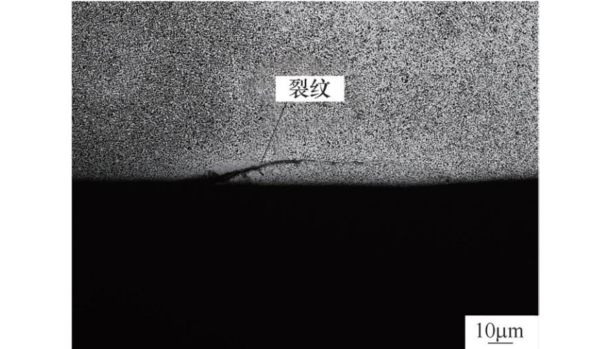 鍛造折疊裂紋缺陷是指在鍛造過程中金屬流動不合理導(dǎo)致鍛件表面形成重疊層,是鍛造加工過程中最常見的缺陷。杠桿鍛造折疊的形成可能是由于表面氧化皮或非金屬夾雜物在鍛打時(shí)被壓入鋼體內(nèi),或是鍛造拔長時(shí)速度過快造成的。若折疊很淺且在加工面,則可通過切削加工加以消除;若折疊很深且在非加工面上,那么它對零件性能的影響是嚴(yán)重的,是一種不允許的鍛造缺陷。建議改進(jìn)桿件的模鍛工藝,定期清理鍛造設(shè)備表面毛刺和氧化皮,加強(qiáng)對杠桿表面夾雜物的檢測,以及鍛造時(shí)合理控制拔長速度,均為預(yù)防折疊缺陷的有效手段。