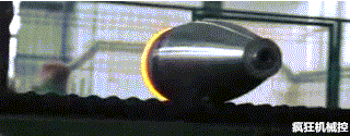 彈頭毛坯件在生產(chǎn)線上移動至高溫爐,高溫加熱的通紅;