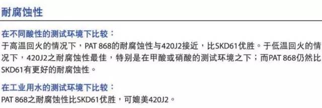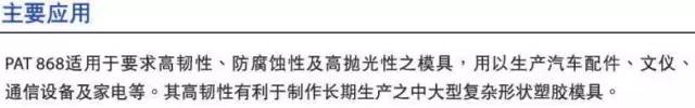 多用途塑膠模具鋼:PAT 868 性能參數(shù)