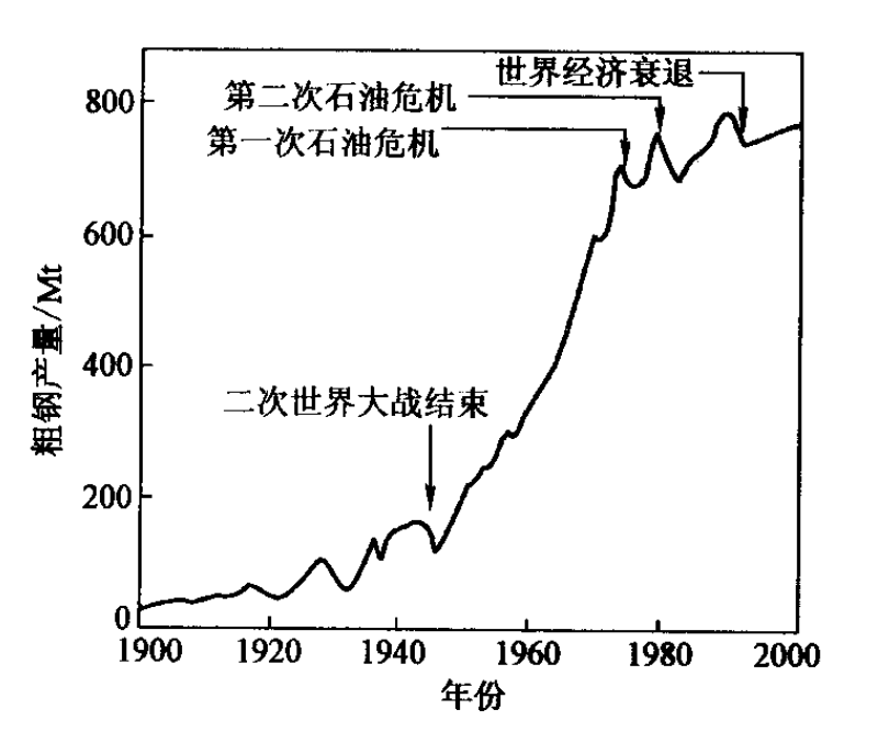 20世紀(jì)世界粗鋼產(chǎn)量的變化情況