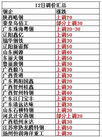 7月12日廣西毅馬上調(diào)30:鋼筋沖粒3680,新鋼板料3680;模具鋼3680;熱軋沖子、冷軋沖子、汽車沖片3680;機(jī)生鐵3660;舊法蘭3660;鋼筋頭、汽車大梁、前后橋3600;熱、冷軋沖片3640;硅鋼片3680;風(fēng)割料3600;一級(jí)剪切料3570;二級(jí)剪切料3380,不含稅。