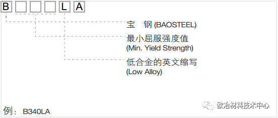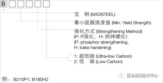 寶鋼產品的牌號一部分直接使用國外標準的牌號,一部分采用自己的命名方式命名。現簡要介紹寶鋼自己命名的牌號的方法。