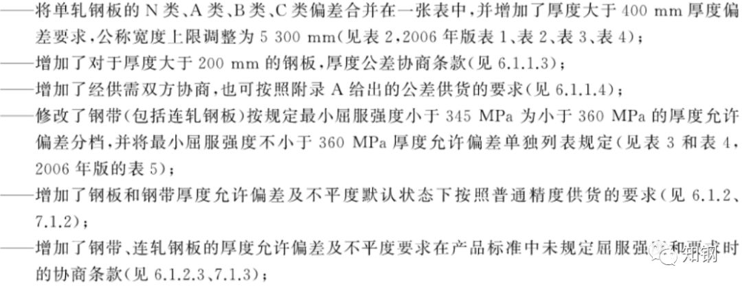此次修訂關(guān)于單軋鋼板厚度偏差方面實(shí)質(zhì)性改動(dòng)不大。主要變動(dòng)如下: