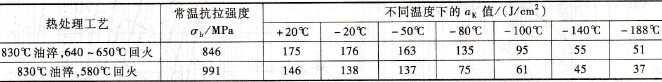 表3-17    42CrMo鋼的低溫沖擊韌度