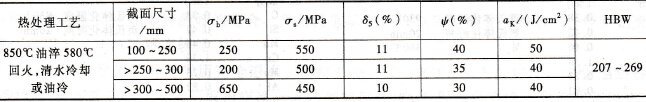 表3-16    42CrMo鋼不同截面調(diào)質(zhì)后的力學(xué)性能