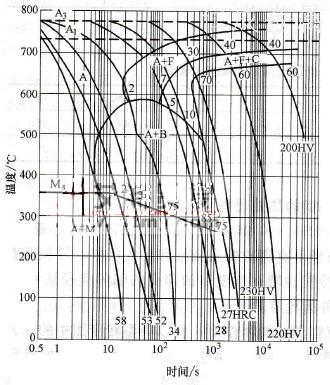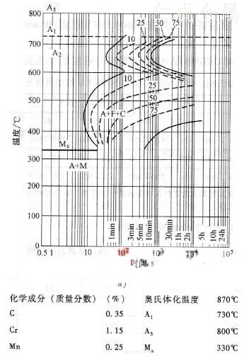 a) 35CrMo鋼等溫轉(zhuǎn)變曲線  b)35 CrMo鋼連續(xù)冷卻轉(zhuǎn)變曲線
