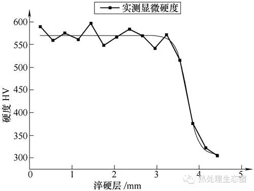 實(shí)測顯微硬度值及硬度梯度曲線如圖3所示。