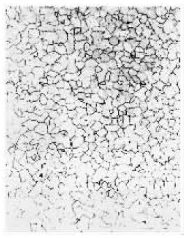 圖1:純鐵的基體組織,主要為白色鐵素體,晶粒均勻分布(6級),圖中黑色細條為晶界腐蝕線。