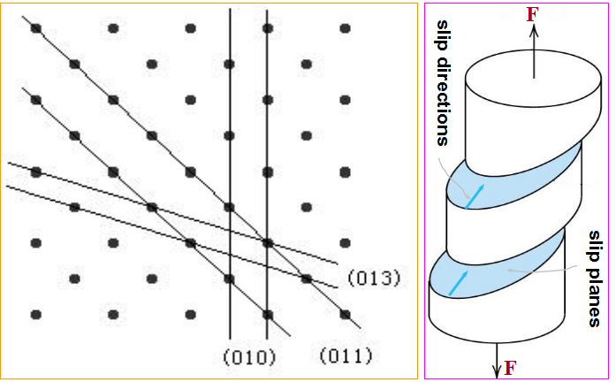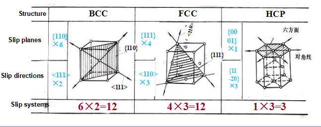 The slip planes are usually the most densely packed planes(密排面); the slip directions are usually close-packed directions(密排方向).