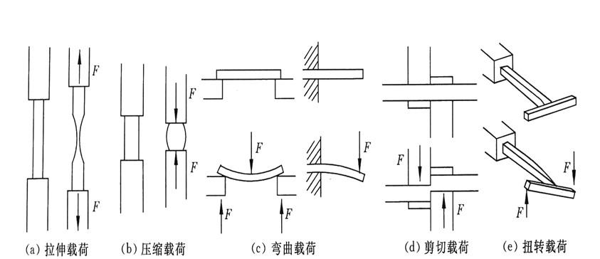 材料失效行為一般是與外力(F) 作用的方式有關。構(gòu)件上作用的外力類型一般有五種: