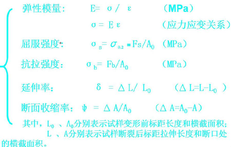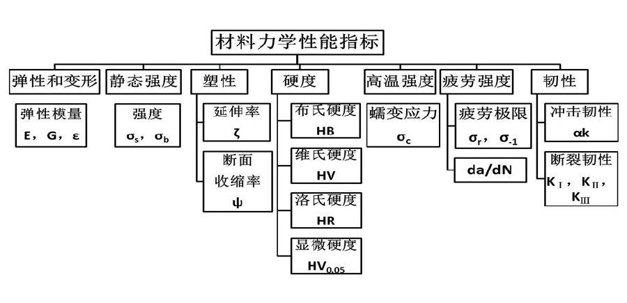材料的力學性能是指在外力和環(huán)境等因素共同作用下抵抗變形和斷裂的能力。主要性能指標有: