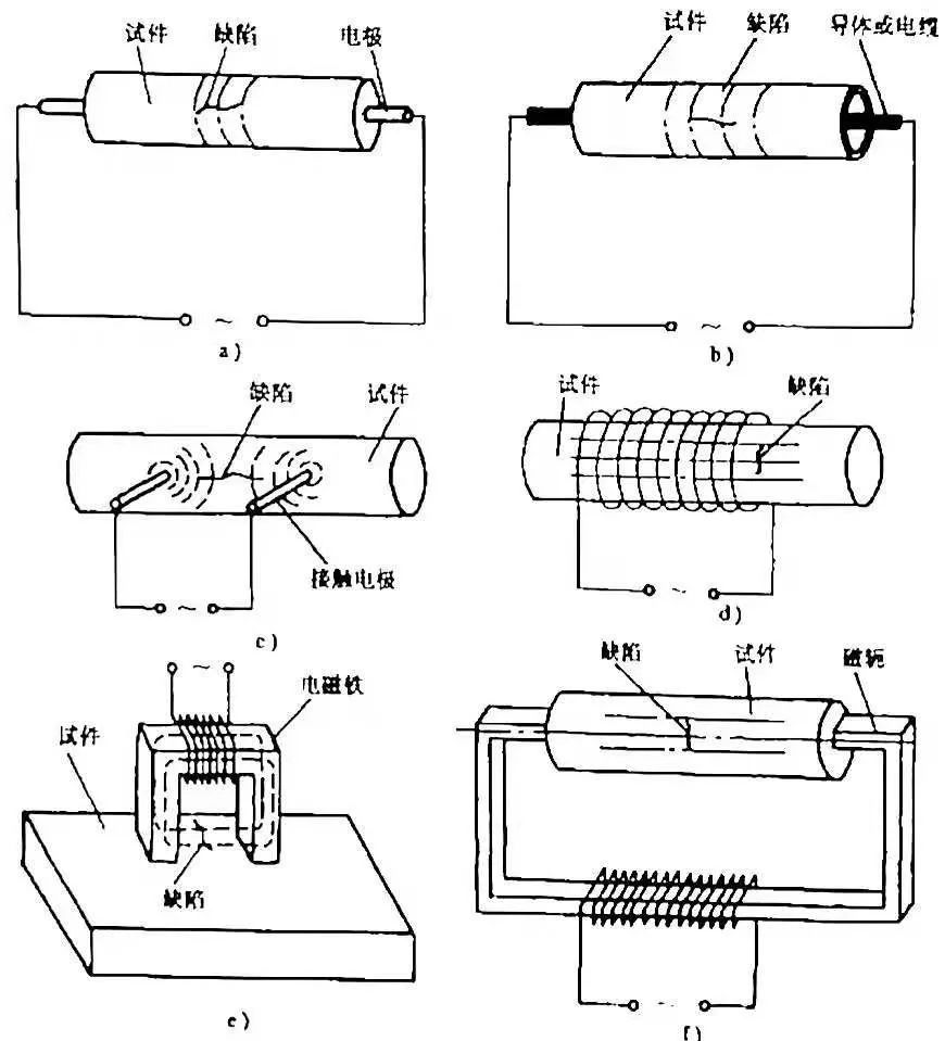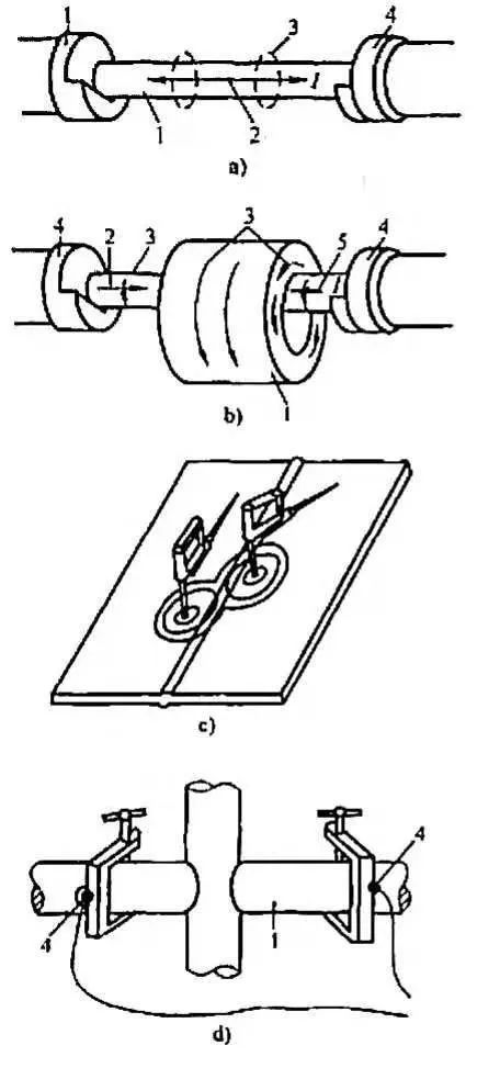 a)兩端接觸法  b)中心導(dǎo)體感應(yīng)磁化法