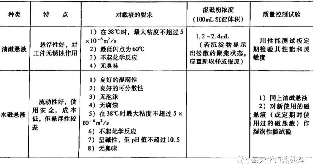 ▼表4 磁懸液種類、特點(diǎn)及技術(shù)要求