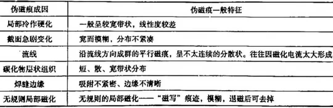 表7 所列為偽磁痕(非缺陷磁痕)的鑒別要點(diǎn)。