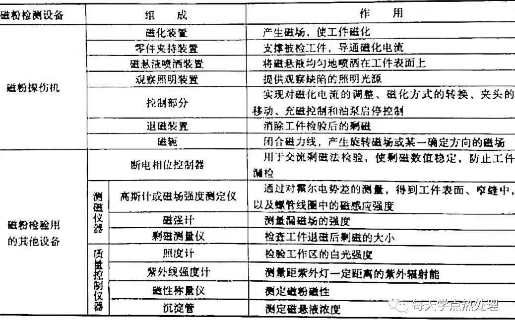 ▼表8 磁粉檢測設(shè)備的組成及作用