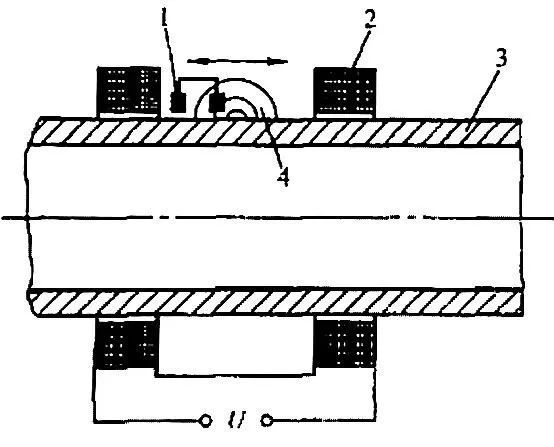1-差動探頭  2-磁化線圈  3-工件  4-漏磁場