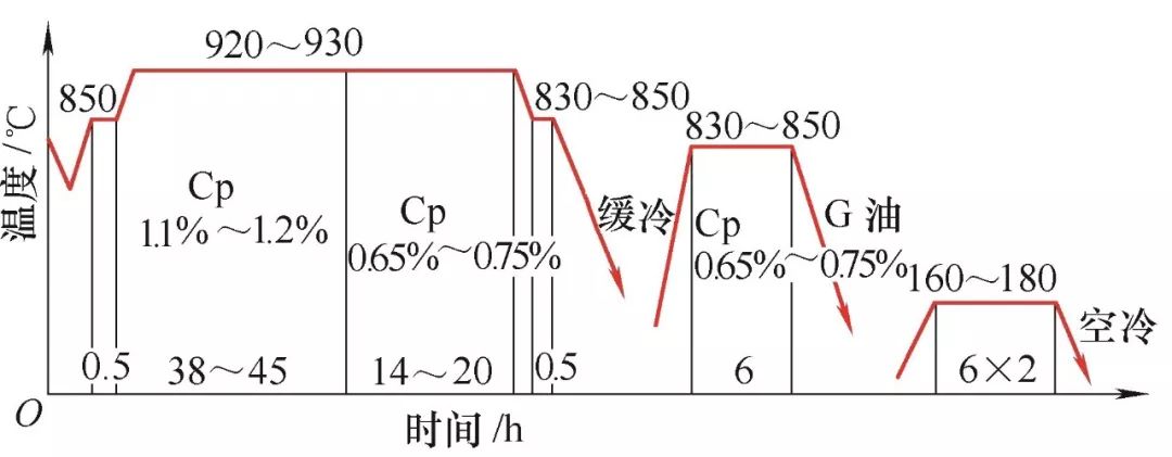 圖5  18CrNiMo7-6鋼滲碳、加熱淬火、低溫回火工藝曲線(xiàn)