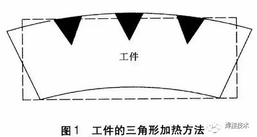 線狀加熱最好由兩人同時操作進行,再分別加熱三角形三角形的寬度不應(yīng)超過板厚的2倍,三角形的底與對應(yīng)的翼板上線狀加熱寬度相等。