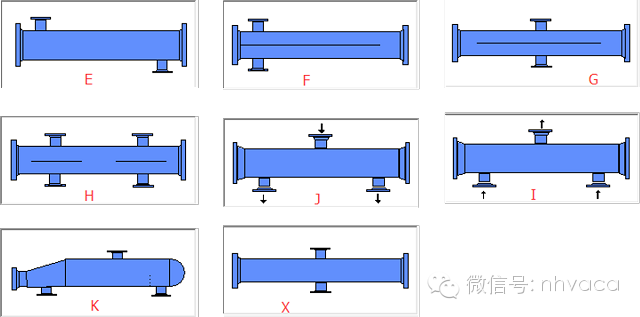 J型殼體:分流殼體,一是適用于殼體氣相壓降較大,振動解決不了的情況;二是用于再沸器,相對于E型使得傳熱的效果比較穩(wěn)定;三是用于部分冷凝的工況,其缺點則是傳熱溫差較小,傳熱系數(shù)也不大。