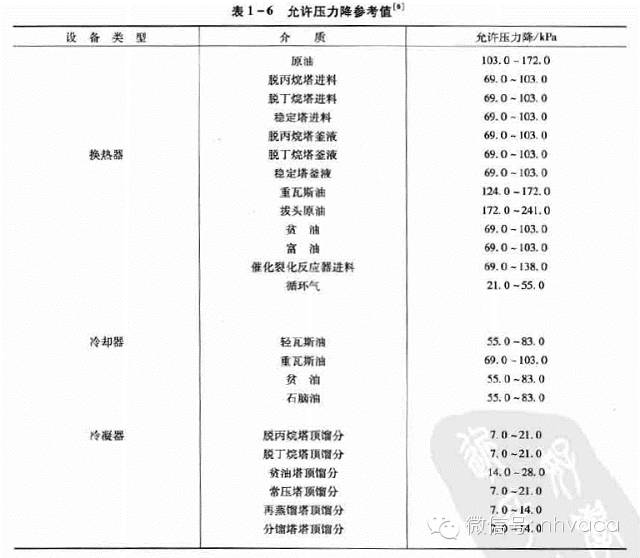 下圖為不同介質(zhì)在不同設(shè)備類型中的允許壓力降參考值: